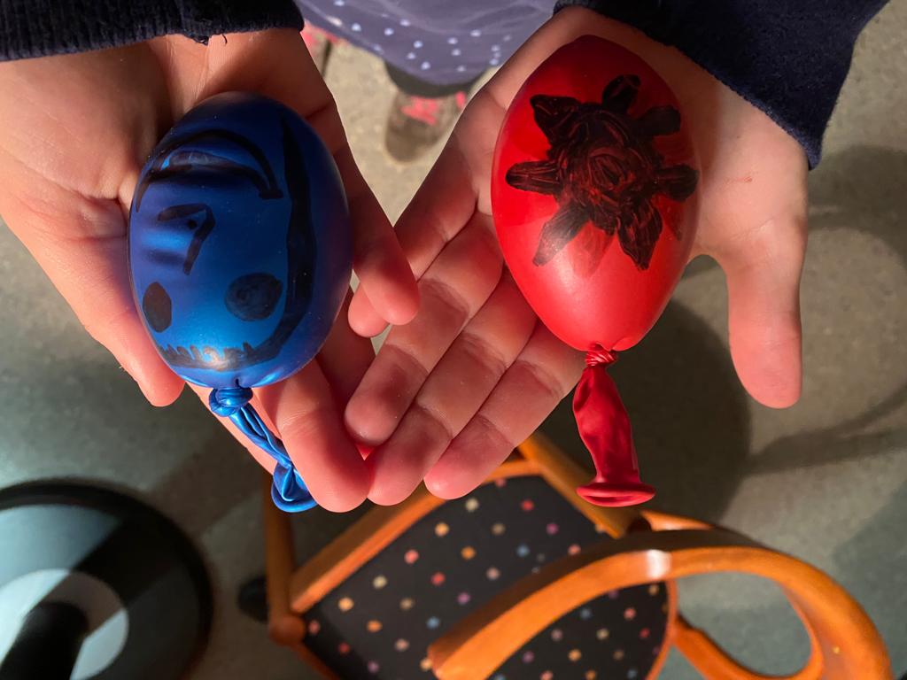 Hier wurden aus Ballons Stressbälle und aus Rasierschaum Bilder